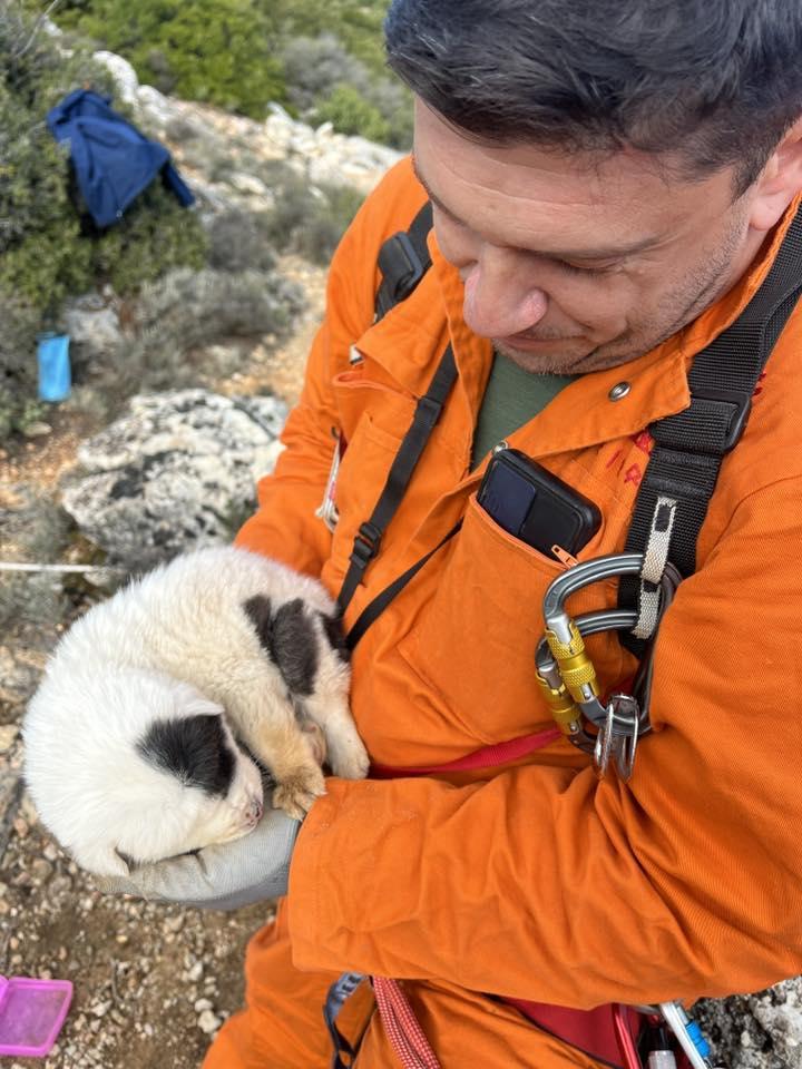 Η ομάδα «Χείρων» εντόπισε το κουταβάκι αλλά και σωρό από σκουπίδια στο σπήλαιο, διασώζοντας το κουταβάκι. Η ομάδα «αντίκρισε τη φρίκη, αλλά και την ελπίδα στο Πήλιο, στο σπήλαιο της Καίτης», γράφει στην ανάρτησή του ο κ. Βαξεβανόπουλος.