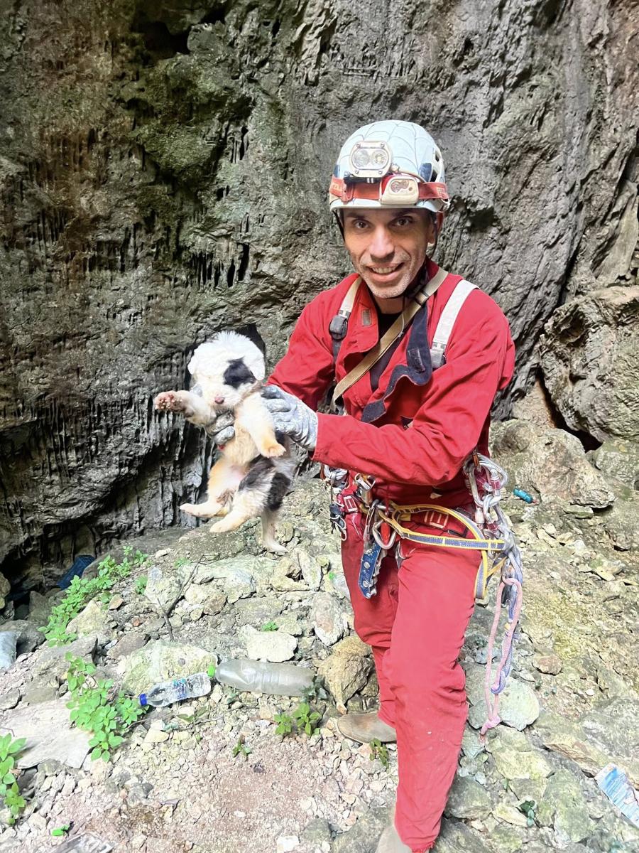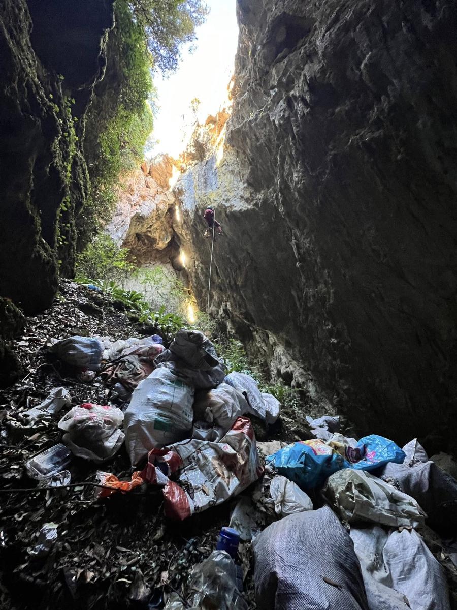 Η ομάδα «Χείρων» εντόπισε το κουταβάκι αλλά και σωρό από σκουπίδια στο σπήλαιο, διασώζοντας το κουταβάκι. Η ομάδα «αντίκρισε τη φρίκη, αλλά και την ελπίδα στο Πήλιο, στο σπήλαιο της Καίτης», γράφει στην ανάρτησή του ο κ. Βαξεβανόπουλος.