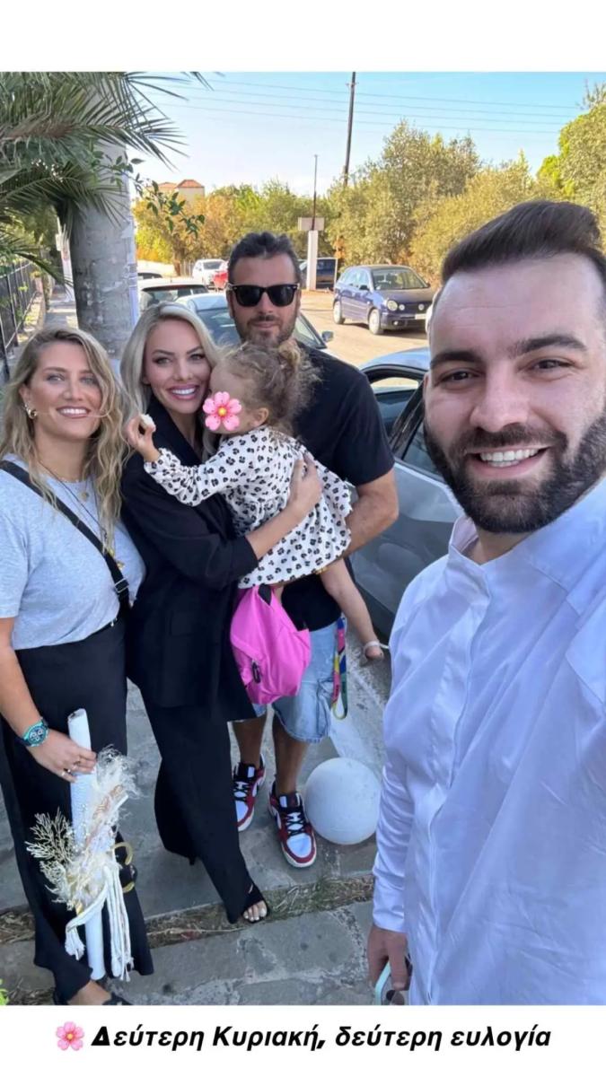 Σε φωτογραφία λοιπόν που ανέβασε η Ιωάννα Μαλέσκου στον προσωπικό της λογαριασμό στο Instagram, δείχνει την ίδια να ποζάρει στο πλευρό του συζύγου της ενώ κρατά στην αγκαλιά της την κόρη της, με το ζευγάρι φαίνεται να βρίσκεται σε βάπτιση μαζί με φίλους.