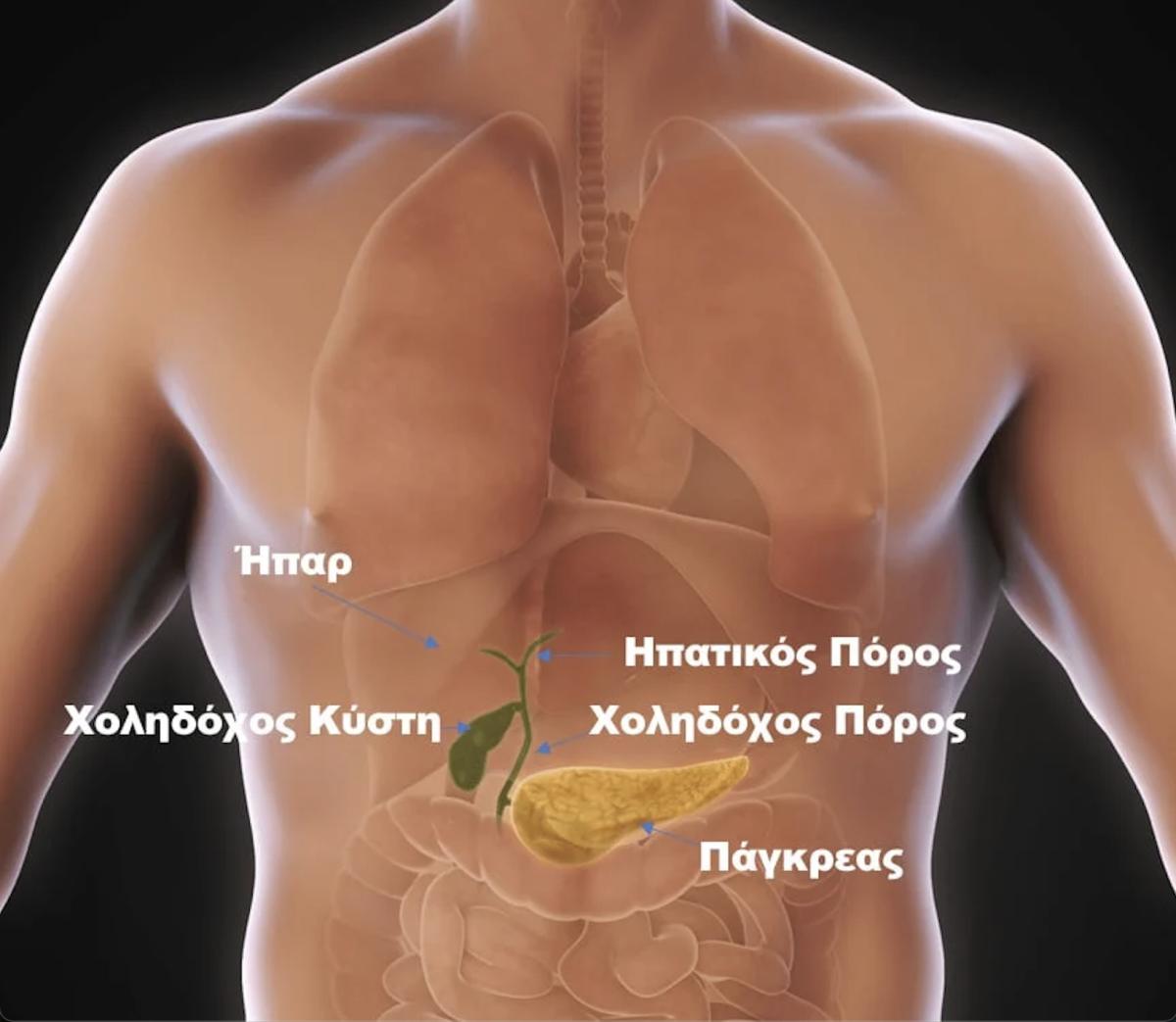 Η χοληδόχος κύστη, ένα μικρό όργανο που βρίσκεται κάτω από το ήπαρ, συνδέεται στενά με αυτό μέσω του χοληδόχου πόρου.