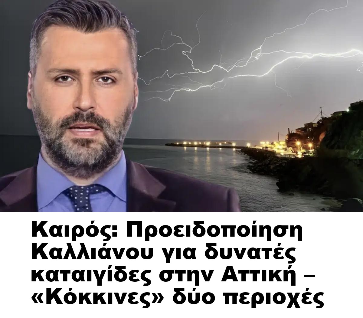 Καιρός: Προειδοποίηση Καλλιάνου για δυνατές καταιγίδες στην Αττική – Κόκκινες δύο περιοχές