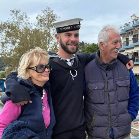 Πιο περήφανοι από ποτέ: Ελένη Mεναγάκη, Γιάννης Λάτσιος και Ματέο Παντζόπουλος ποζάρουν με τον ναύτη Άγγελο Λάτσιο