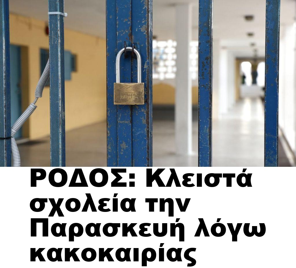 Τα σχολεία στη Ρόδο θα παραμείνουν κλειστά αύριο, καθώς η επιδείνωση του καιρού οδηγεί τις αρχές στην προληπτική αναστολή λειτουργίας όλων των εκπαιδευτικών μονάδων. Η απόφαση αφορά τόσο τη πρωτοβάθμια όσο και τη δευτεροβάθμια εκπαίδευση, με στόχο την ασφάλεια μαθητών και προσωπικού.