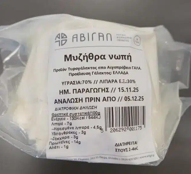 Ο ΕΦΕΤ, μέσω της Περιφερειακής Διεύθυνσης Δυτικής Ελλάδας προχώρησε σε δειγματοληψία του προϊόντος «Μυζήθρα Νωπή – ΑΒΙΓΑΛ», παραγωγής 15 Νοεμβρίου 2025 και ημερομηνίας ανάλωσης έως 5 Δεκεμβρίου 2025, σε συσκευασίες των 400 γραμμαρίων (δείτε φωτογραφία παρακάτω). Η μυζήθρα παράγεται και συσκευάζεται από την εταιρεία Α.ΒΙ.ΓΑΛ Α.Ε.-ΑΧΑΪΚΗ ΒΙΟΜΗΧΑΝΙΑ ΓΑΛΑΚΤΟΣ-ΕΜΠΟΡΙΑ ΕΙΔΩΝ ΣΟΥΠΕΡ ΜΑΡΚΕΤ-ΑΦΟΙ ΑΘ. ΠΑΝΤΕΛΗ & ΣΙΑ ΑΕ. Σύμφωνα με την ιστοσελίδα της εταιρείας, είναι η πρώτη ιδιωτική εταιρεία του κλάδου στην Πελοπόννησο τόσο σε πωλήσεις όσο και σε ποσότητα εισκομιζόμενης α’ ύλης και ποικιλίας προϊόντων. Σε πανελλαδικό επίπεδο η ΑΒΙΓΑΛ κατατάσσεται ανάμεσα στις 30 πρώτες επιχειρήσεις του κλάδου.