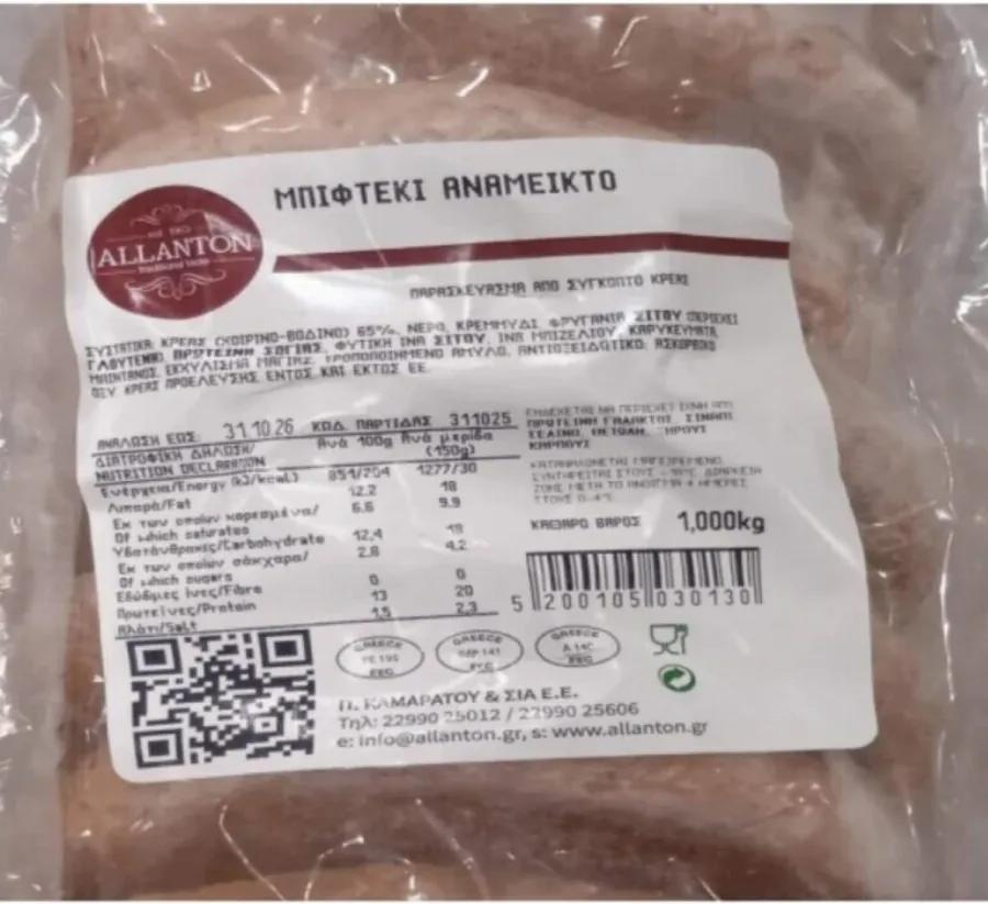 Πρόκειται για το προϊόν «ΜΠΙΦΤΕΚΙ ΚΑΤΕΨΥΓΜΕΝΟ» με κωδικό παρτίδας 31102025 και ημερομηνία ανάλωσης έως 31.10.2026, που παράγεται από την επιχείρηση «Π.ΚΑΜΑΡΑΤΟΥ & ΣΙΑ ΕΕ».