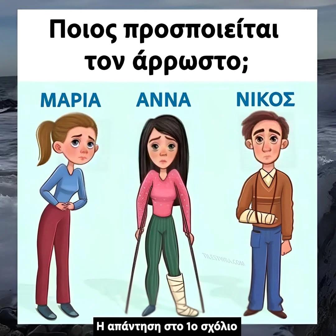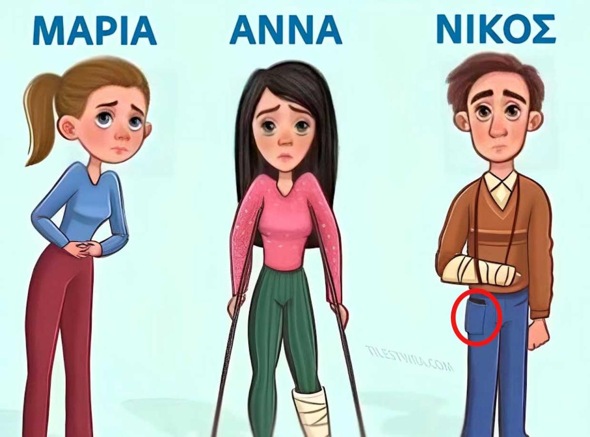 Ρίξτε μια προσεκτική ματιά σε κάθε άτομο στην εικόνα. Αναλύστε προσεκτικά τις εκφράσεις τους, τη γλώσσα του σώματος και τον τρόπο που παρουσιάζουν τα τραύματά τους. Ένας από αυτούς δεν είναι πραγματικά άρρωστος!