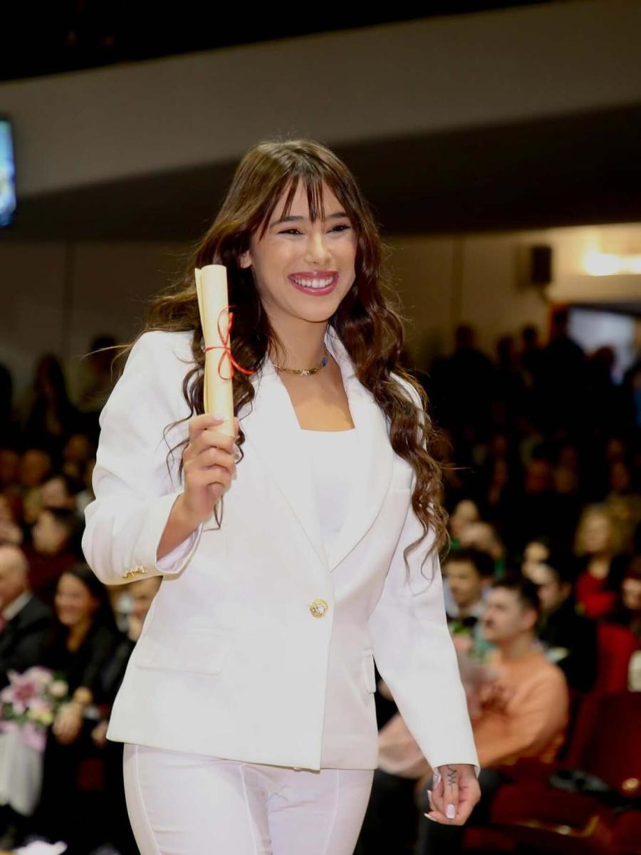 Η κόρη της τραγουδίστριας και του Φώτη Ζογλοπίτη πήρε το πτυχίο της από το Τμήμα Πολιτικών Επιστημών του ΑΠΘ.