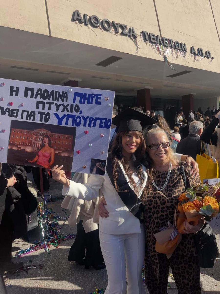 Πριν από λίγες ημέρες, η Παολίνα πήρε το πτυχίο της από το Τμήμα Πολιτικών Επιστημών του ΑΠΘ. Την Κυριακή 14 Δεκεμβρίου δημοσίευσε στο Instagram στιγμιότυπα μέσα από το αμφιθέατρο τη στιγμή που παραλάμβανε το πτυχίο της, αλλά και έξω από πανεπιστήμιο με τους φίλους και την οικογένειά της. Σε μερικές εικόνες η Παολίνα εμφανίζεται με την Πάολα και τον πατέρα της, Φώτη Ζογλοπίτη.