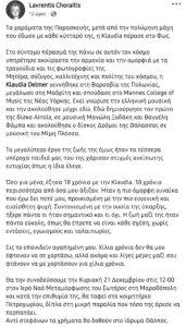 «Τα χαράματα της Παρασκευής, μετά από την πολύμηνη μάχη που έδωσε με κάθε κύτταρό της, η Klaudia πέρασε στο Φως.