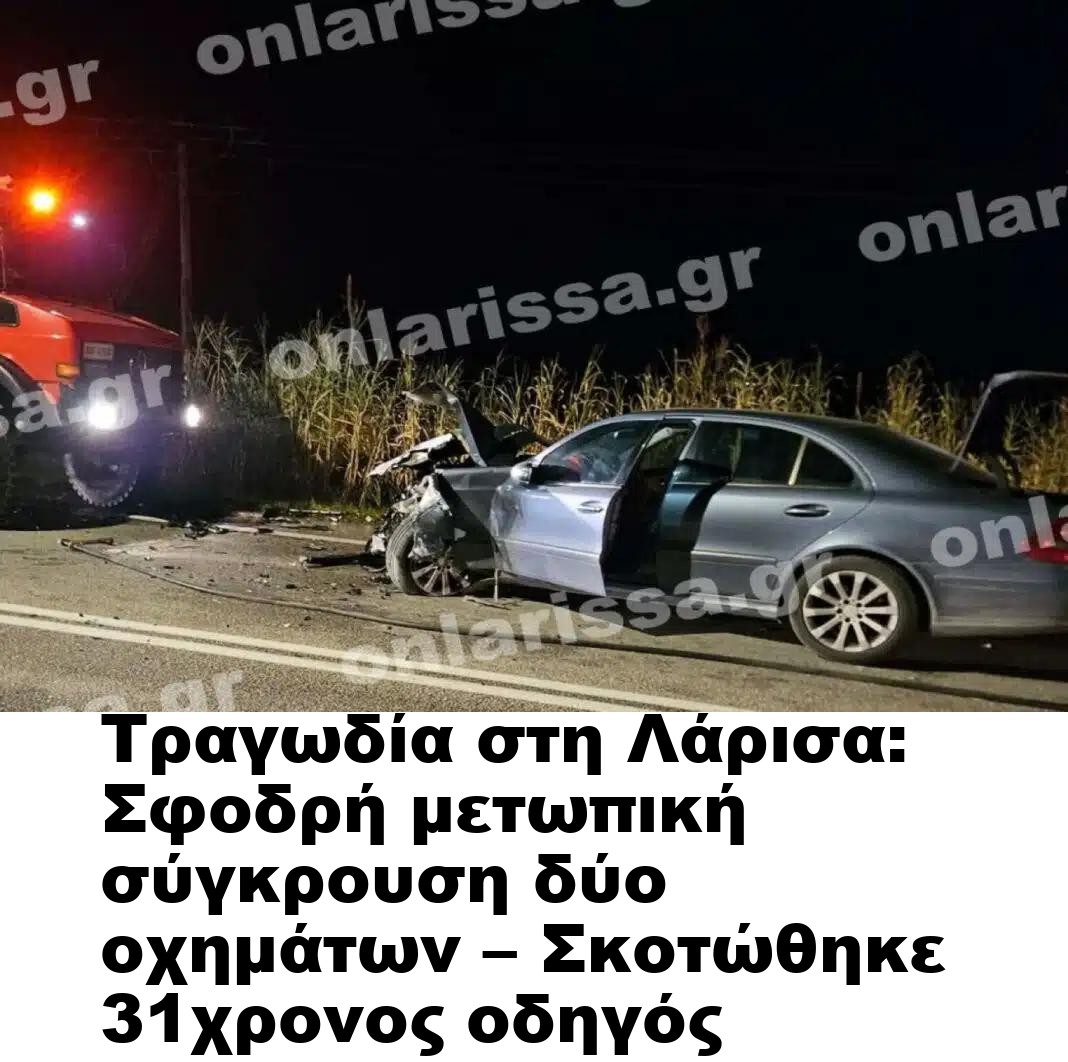 Τραγωδία στη Λάρισα: Σφοδρή μετωπική σύγκρουση δύο οχημάτων – Σκοτώθηκε 31χρονος οδηγός