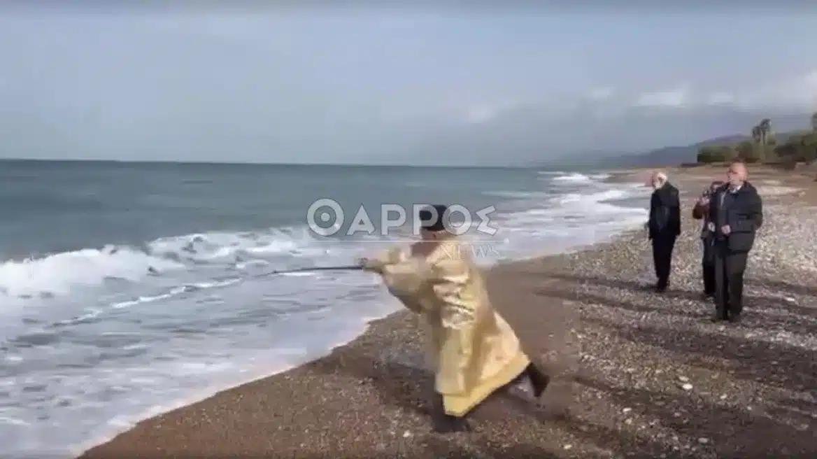 Ιερέας έριξε τον Σταυρό στη θάλασσα με καλάμι ψαρέματος