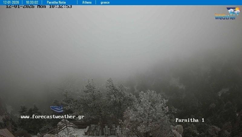 Την ίδια ώρα, ασθενής χιονόπτωση σημειώνεται και στην Πάρνηθα, με τη θερμοκρασία να καταγράφεται στους -5 βαθμούς Κελσίου σε υψόμετρο 1.000 μέτρων, σύμφωνα με το Εθνικό Αστεροσκοπείο Αθηνών.
