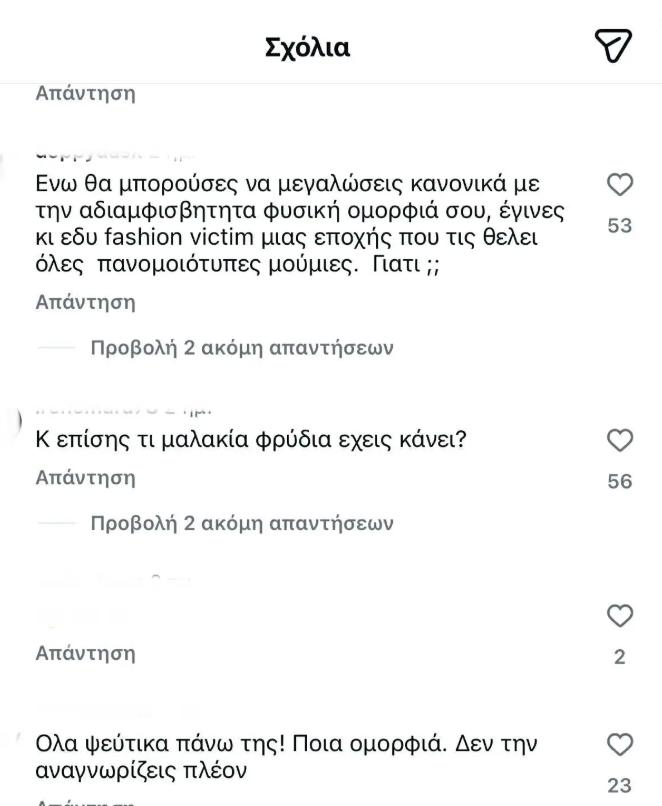 Δες παρακάτω μερικά από τα σχόλια που έγραψαν στο instagram για την Αγγελική Ηλιάδη: