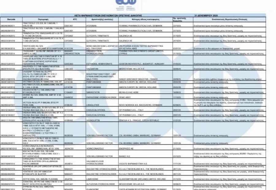 Τέλος, η νομοθεσία προβλέπει ότι οι εταιρείες οφείλουν να διασφαλίζουν επαρκή και συνεχή τροφοδοσία προς φαρμακεία και λοιπά σημεία νόμιμης διάθεσης, ώστε να καλύπτονται οι ανάγκες των ασθενών στην Ελλάδα. Σε περιπτώσεις που διαπιστώνεται μη συμμόρφωση, ο ΕΟΦ μπορεί να προχωρήσει στις προβλεπόμενες ενέργειες και στην επιβολή κυρώσεων.
