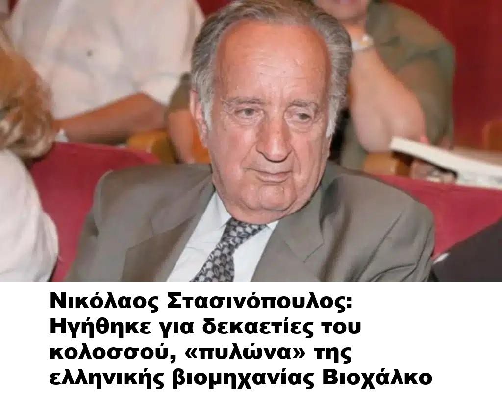 Σήμερα, η ελληνική βιομηχανία αποχαιρετά έναν από τους πιο σεμνούς αλλά ισχυρούς ηγέτες της. Ο Νικόλαος Στασινόπουλος, που καθόρισε για δεκαετίες την πορεία της Βιοχάλκο και άφησε ανεξίτηλο το στίγμα του στον ελληνικό επιχειρηματικό κόσμο, «έφυγε» σε ηλικία 95 ετών. Παρά τη μεγάλη του δύναμη και επιρροή, παρέμεινε πάντα διακριτικός, απέχοντας από τα φώτα της δημοσιότητας.