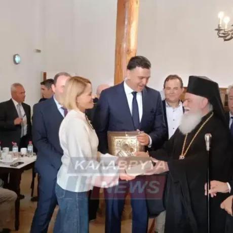 Ο υπουργός Ναυτιλίας, συνοδευόμενος από τη σύζυγό του και τον μικρό τους γιο Παναγιώτη Αντώνιο, ο οποίος τον Δεκέμβριο θα γιορτάσει τα 5α γενέθλιά του, βρέθηκε στα Καλάβρυτα για να παραστεί στις εκδηλώσεις για την επέτειο του «Όχι».