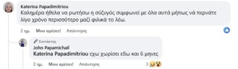 Συγκεκριμένα, σε μια από τις αναρτήσεις του, μια γυναίκα έχει σχολιάσει: «Καλημέρα ήθελα να ρωτήσω, η σύζυγος συμφωνεί με όλα αυτά μήπως να περνάτε λίγο χρόνο περισσότερο μαζί; Φιλικά το λέω».