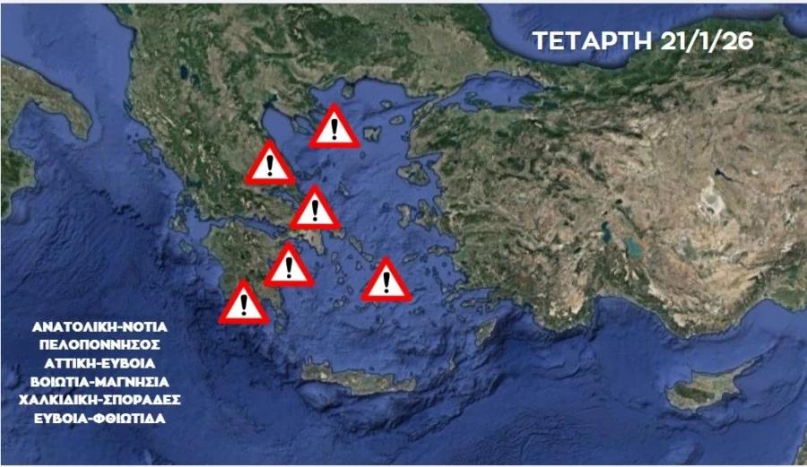 Οι Red Code περιοχές σήμερα Τετάρτη 21/1/26