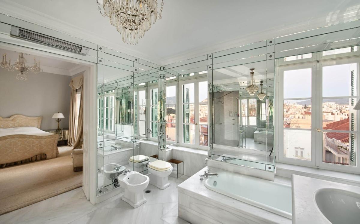 “Η προσεγμένη διαμόρφωση της αυλής προσφέρει μια ήσυχη όαση στην καρδιά της πόλης”, αναφέρει ο οίκος. Το εσωτερικό αποπνέει μια διαχρονική αίσθηση κομψότητας, με μαρμάρινα δάπεδα, φωτεινούς χώρους και προσεγμένη διακόσμηση που συνδυάζει αντίκες, ελληνικά έργα τέχνης και μοντέρνες ανέσεις. Στο πρώτο επίπεδο βρίσκονται οι κοινόχρηστοι χώροι, όπως το σαλόνι, η τραπεζαρία και η κουζίνα, ενώ ο δεύτερος όροφος φιλοξενεί τα υπνοδωμάτια, προσφέροντας μοναδικές θέες στην Ακρόπολη και την πόλη.