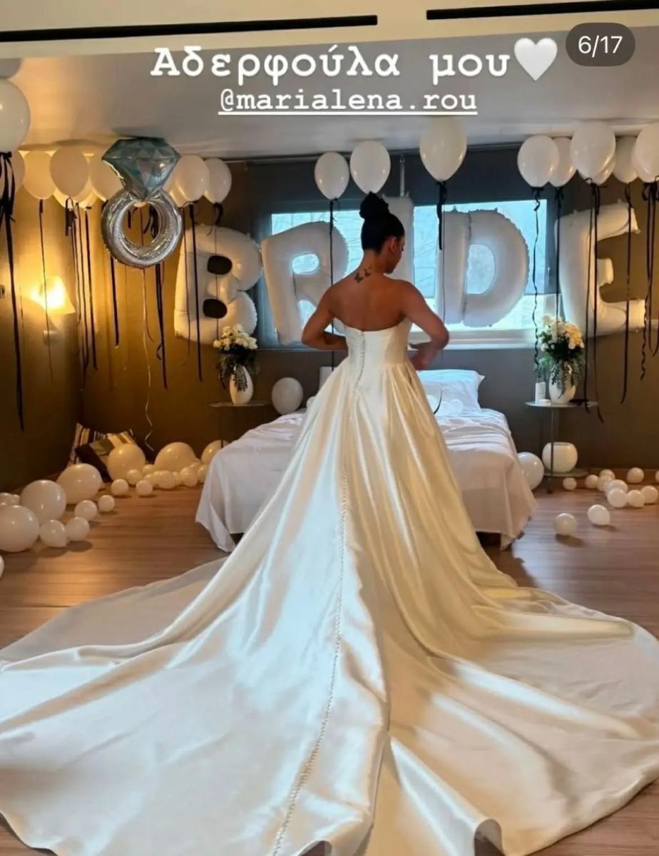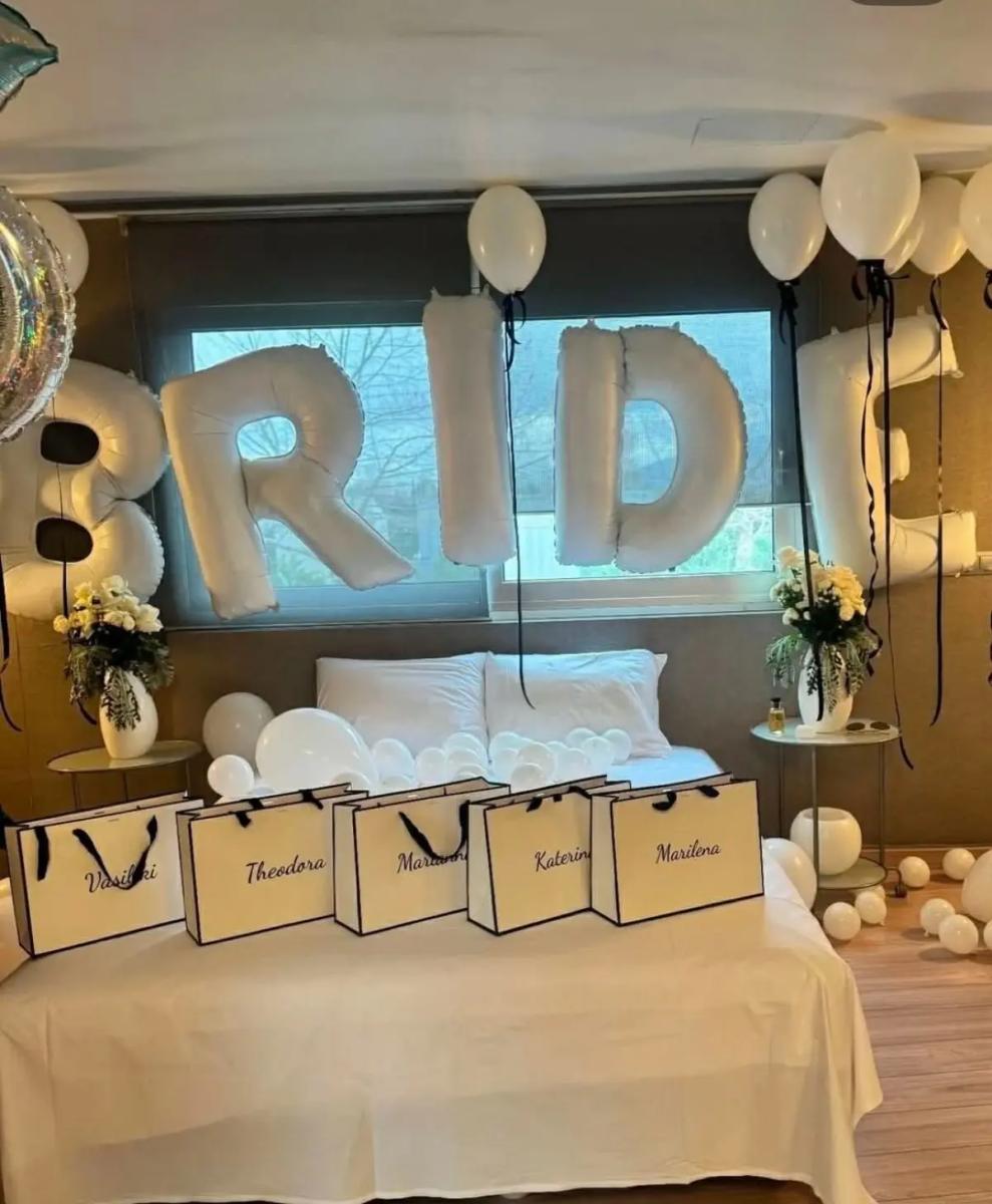 Συγκεκριμένα, στα στιγμιότυπα βλέπουμε την Μαριαλένα Ρουμελιώτη να ετοιμάζεται σε έναν όμορφα διακοσμημένο χώρο με μαύρα και άσπρα μπαλόνια, ενώ το κρεβάτι είναι στολισμένο με δώρα και ένα τεράστιο μπαλόνι που γράφει “bride”. Στο πλευρό της βρίσκονται όλα τα αγαπημένα της πρόσωπα, με την ίδια να λάμπει από ευτυχία.