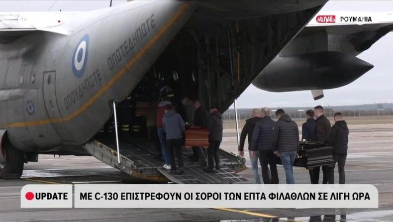 Οι εικόνες από τη μεταφορά των σορών στο στρατιωτικό αεροσκάφος C-130, είναι από εκείνες που δύσκολα μπορεί να αποδώσει κανείς με λόγια. Καθώς μετέφερε το ρεπορτάζ, η φωνή της δημοσιογράφου «έσπασε», αποτυπώνοντας το βάρος από το μέγεθος της τραγωδία.