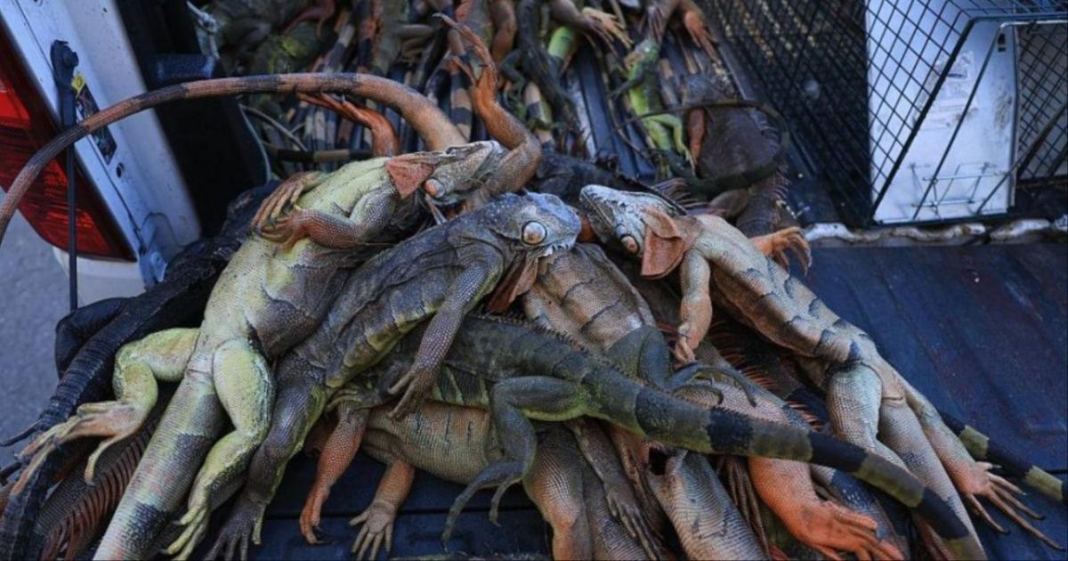 Εκτιμάται ότι περίπου πάνω από 1 εκατομμύριο ιγκουάνα τεμπελιάζουν στις κορυφές των δέντρων της Φόριντα, που σημαίνει ότι τα ερπετά πέφτουν «βροχή».