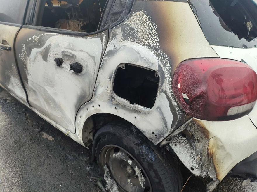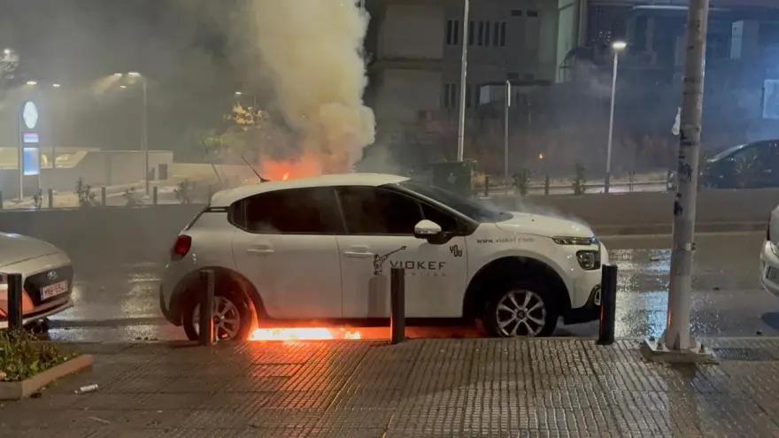 Από τη ρίψη μολότοφ ένα αυτοκίνητο καταστράφηκε ολοσχερώς ενώ άλλα δύο αυτοκίνητα έχουν υποστεί σοβαρές φθορές