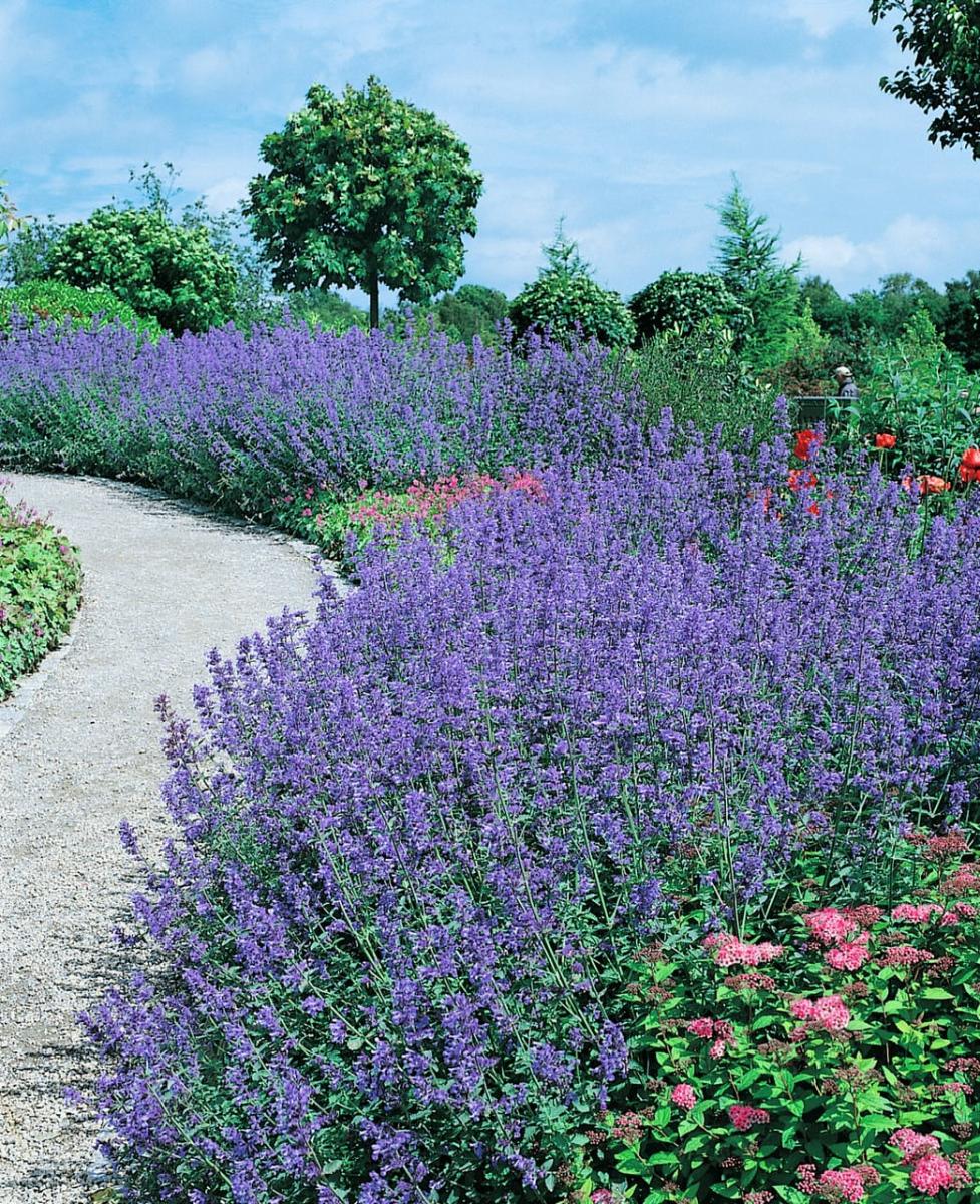 Η νεπέτα και η κορέοψη προσθέτουν συνεχή χρώματα από την άνοιξη έως το φθινόπωρο, χωρίς ιδιαίτερες απαιτήσεις.