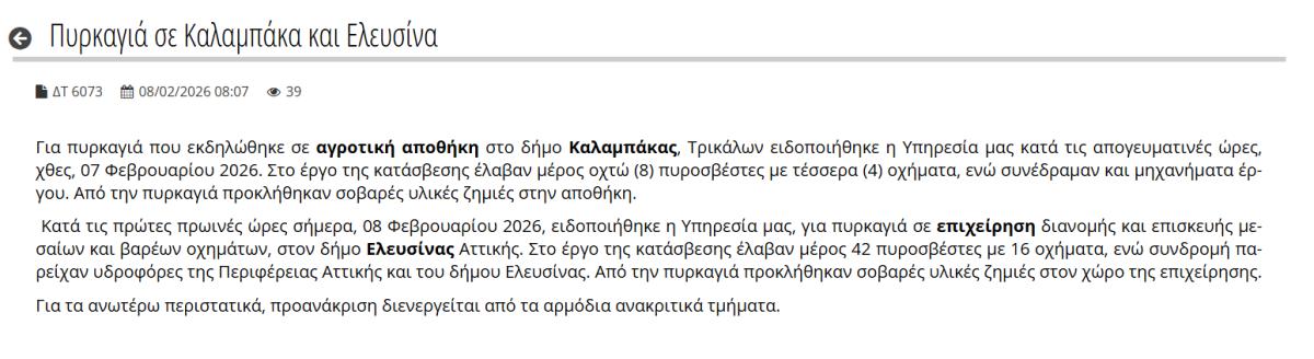 Τα ακριβή αίτια της πυρκαγιάς δεν έχουν ακόμη διευκρινιστεί. Μετά την πλήρη κατάσβεση, αναμένεται να πραγματοποιηθεί αυτοψία από το ανακριτικό τμήμα της Πυροσβεστικής, προκειμένου να διαπιστωθεί πώς ξεκίνησε η φωτιά.