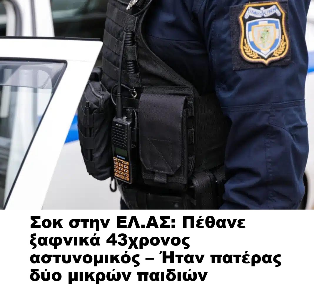 Σοκ στην ΕΛ.ΑΣ: Πέθανε ξαφνικά 43χρονος αστυνομικός – Ήταν πατέρας δύο μικρών παιδιών