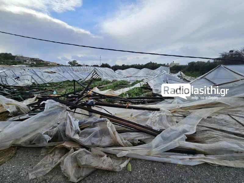 Αργά τη νύχτα της Πέμπτης, ένας ανεμοστρόβιλος που σχηματίστηκε στην περιοχή και «σάρωσε» θερμοκηπιακές εγκαταστάσεις, ισοπεδώνοντας σχεδόν ολοκληρωτικά τουλάχιστον δύο θερμοκήπια και προκαλώντας εκτεταμένες ζημιές σε αρκετά ακόμη. Οι ισχυροί άνεμοι ξήλωσαν νάιλον και μεταλλικές κατασκευές, αφήνοντας πίσω εικόνες καταστροφής, όπως μεταδίδει η ιστοσελίδα radiolasithi.gr.