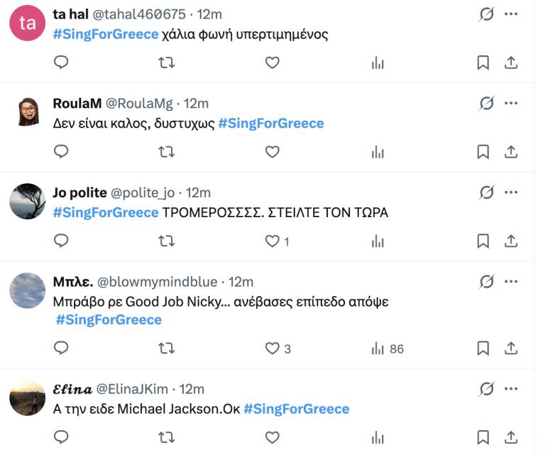 Όπως ήταν αναμενόμενο, η εντυπωσιακή εμφάνιση του Good Job Nicky στον Β΄Ημιτελικό «Sing for Greece» κατάφερε να γίνει πρώτο θέμα συζήτησης στο X με πολλά εκ των σχολίων που γράφτηκαν να παραείναι αυστηρά και ίσως άδικα.
