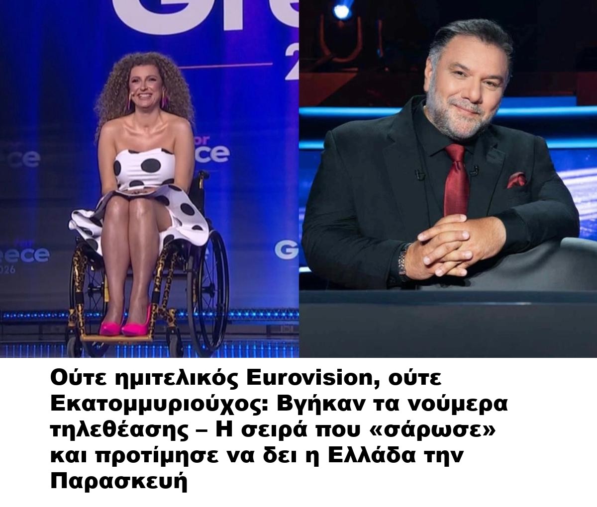 Ούτε ημιτελικός Eurovision, ούτε Εκατομμυριούχος: Βγήκαν τα νούμερα τηλεθέασης – Η σειρά που σάρωσε και προτίμησε να δει η Ελλάδα την Παρασκευή