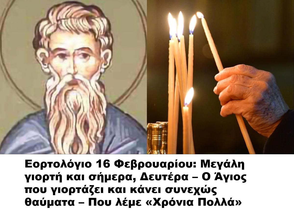 Εορτολόγιο 16 Φεβρουαρίου: Μεγάλη γιορτή και σήμερα, Δευτέρα – Ο Άγιος που γιορτάζει και κάνει συνεχώς θαύματα – Που λέμε Χρόνια Πολλά