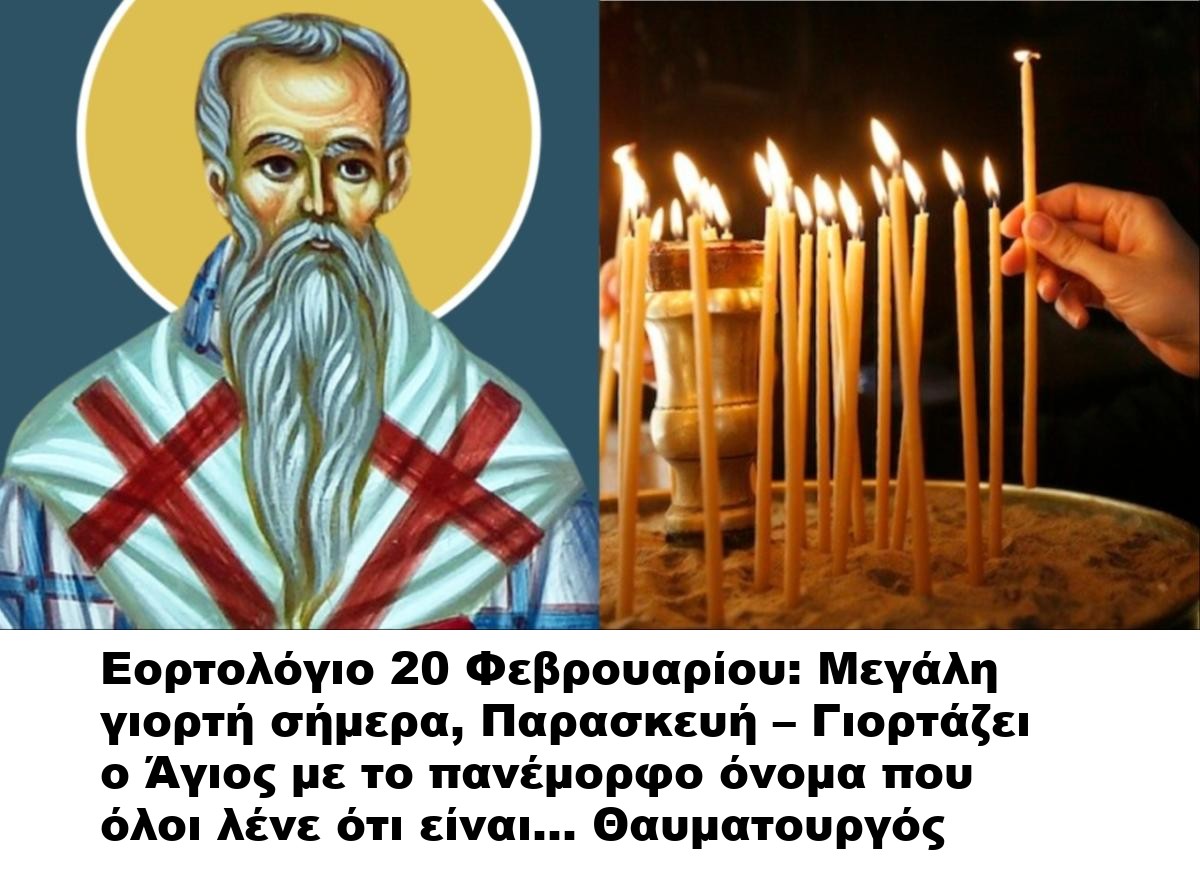 Εορτολόγιο 20 Φεβρουαρίου: Μεγάλη γιορτή σήμερα, Παρασκευή – Γιορτάζει ο Άγιος με το πανέμορφο όνομα που όλοι λένε ότι είναι… Θαυματουργός