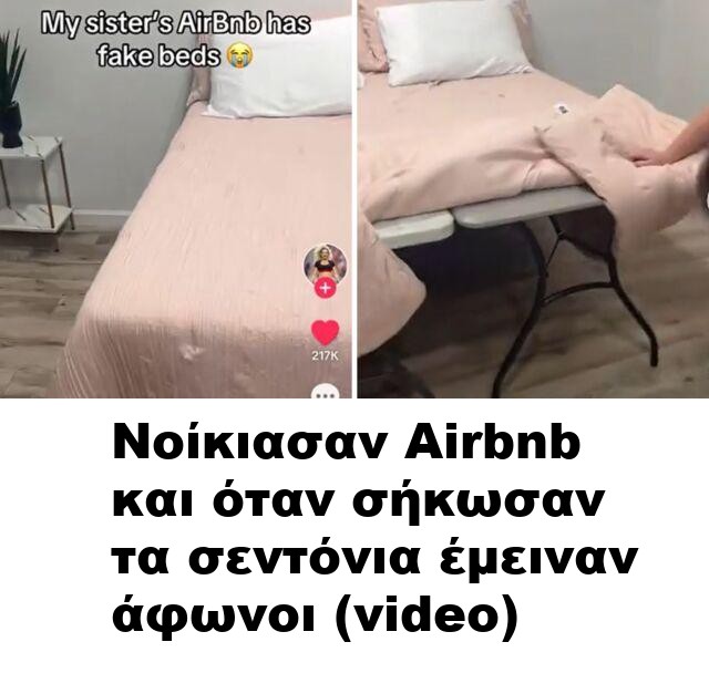 Στο επίμαχο βίντεο, η κοπέλα εξηγεί πως όταν σήκωσε το πάπλωμα, διαπίστωσε ότι το «κρεβάτι» δεν ήταν κρεβάτι. Ήταν δύο πτυσσόμενα τραπέζια τοποθετημένα δίπλα-δίπλα, σκεπασμένα πρόχειρα με ένα παπλωματάκι.