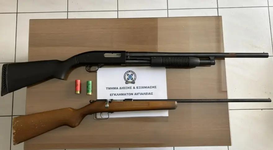 Σε έρευνα που ακολούθησε στο σπίτι του, βρέθηκαν και κατασχέθηκαν δύο φυσίγγια κυνηγετικού όπλου. Επιπλέον, σε επαγγελματικό χώρο και αγροτική αποθήκη ιδιοκτησίας του, ο ίδιος παρέδωσε αυτοβούλως: