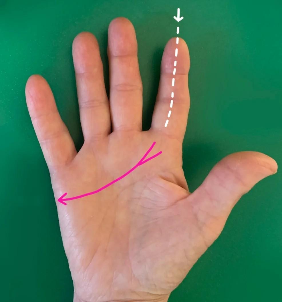 Η Γραμμή της Καρδιάς: Ξεκινά περίπου κάτω από τον δείχτη και καταλήγει εκεί που τελειώνει το μικρό μας δάχτυλο.