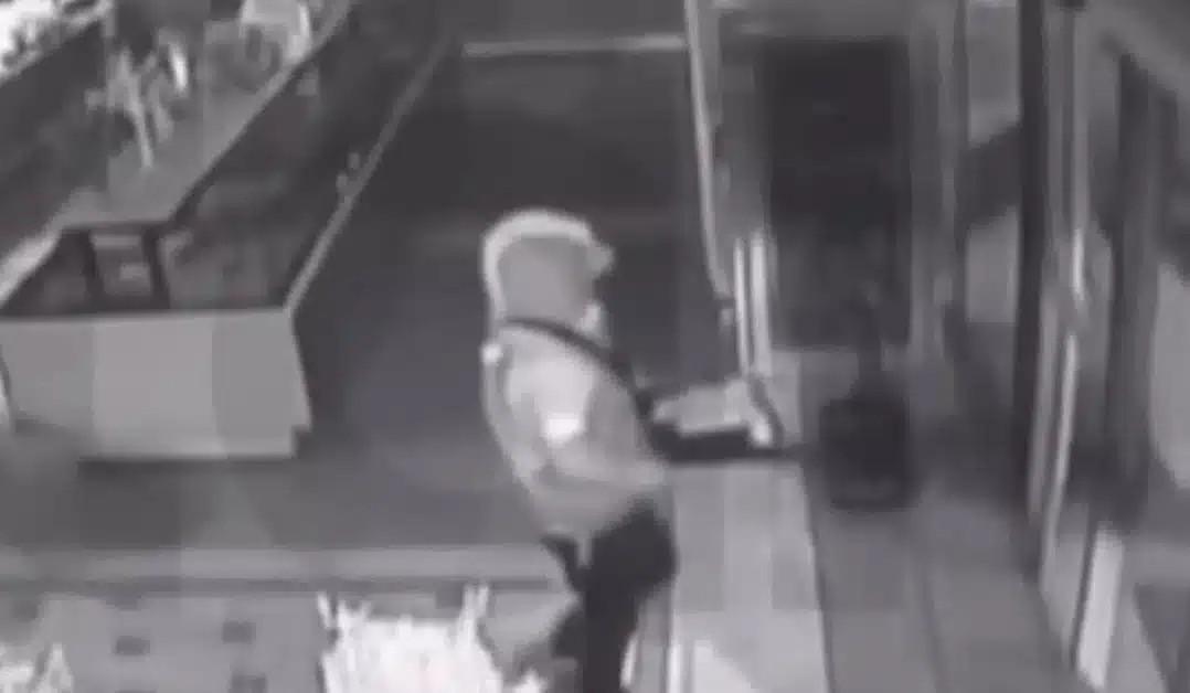 Αρχικά κατευθύνθηκε προς την ταμειακή μηχανή, ελπίζοντας να βρει μετρητά. Ωστόσο, όταν διαπίστωσε ότι το ταμείο ήταν άδειο, άρχισε να ψάχνει στον χώρο για κάτι που θα μπορούσε να πάρει μαζί του. Την ίδια στιγμή ενεργοποιήθηκε ο συναγερμός της επιχείρησης, γεγονός που φαίνεται πως τον έκανε να κινηθεί γρήγορα για να αποχωρήσει.