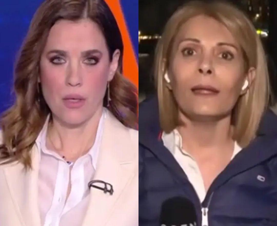 Τότε, η παρουσιάστρια Εύα Αντωνοπούλου ενημερώνει το κοινό ότι προχωρά στο επόμενο θέμα, λέγοντας: «Ελπίζουμε να μην κινδυνεύσουν οι συνάδελφοι, τους αφήνουμε να πάμε σε ένα ασφαλές σημείο».