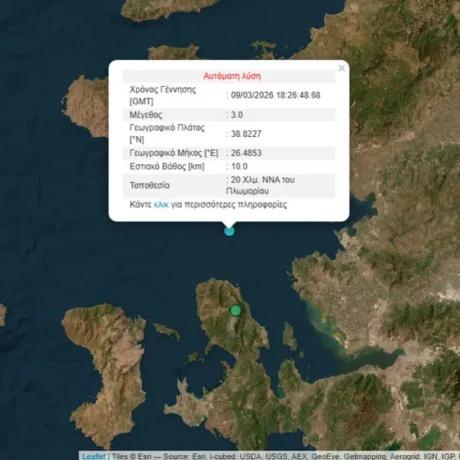 Στις 20:26 καταγράφηκε δόνηση 3 Ρίχτερ, σύμφωνα με την αυτόματη λύση του Γεωδυναμικού Ινστιτούτου.