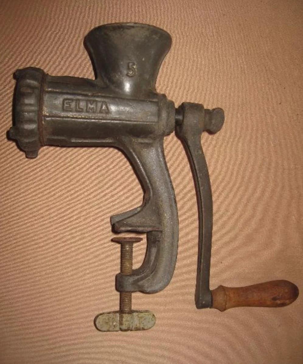 Στην πραγματικότητα ήταν μια χειροκίνητη μηχανή κιμά, ένα εργαλείο κουζίνας που κάποτε ήταν πολύ συνηθισμένο στα οικογενειακά σπίτια.