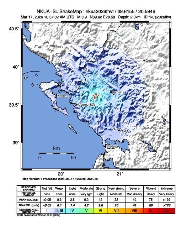 Σεισμός 4,1 Ρίχτερ στη Θεσπρωτία με επίκεντρο κοντά στην Αγία Κυριακή Ιωαννίνων. Στα 11,9 χλμ. το εστιακό βάθος.