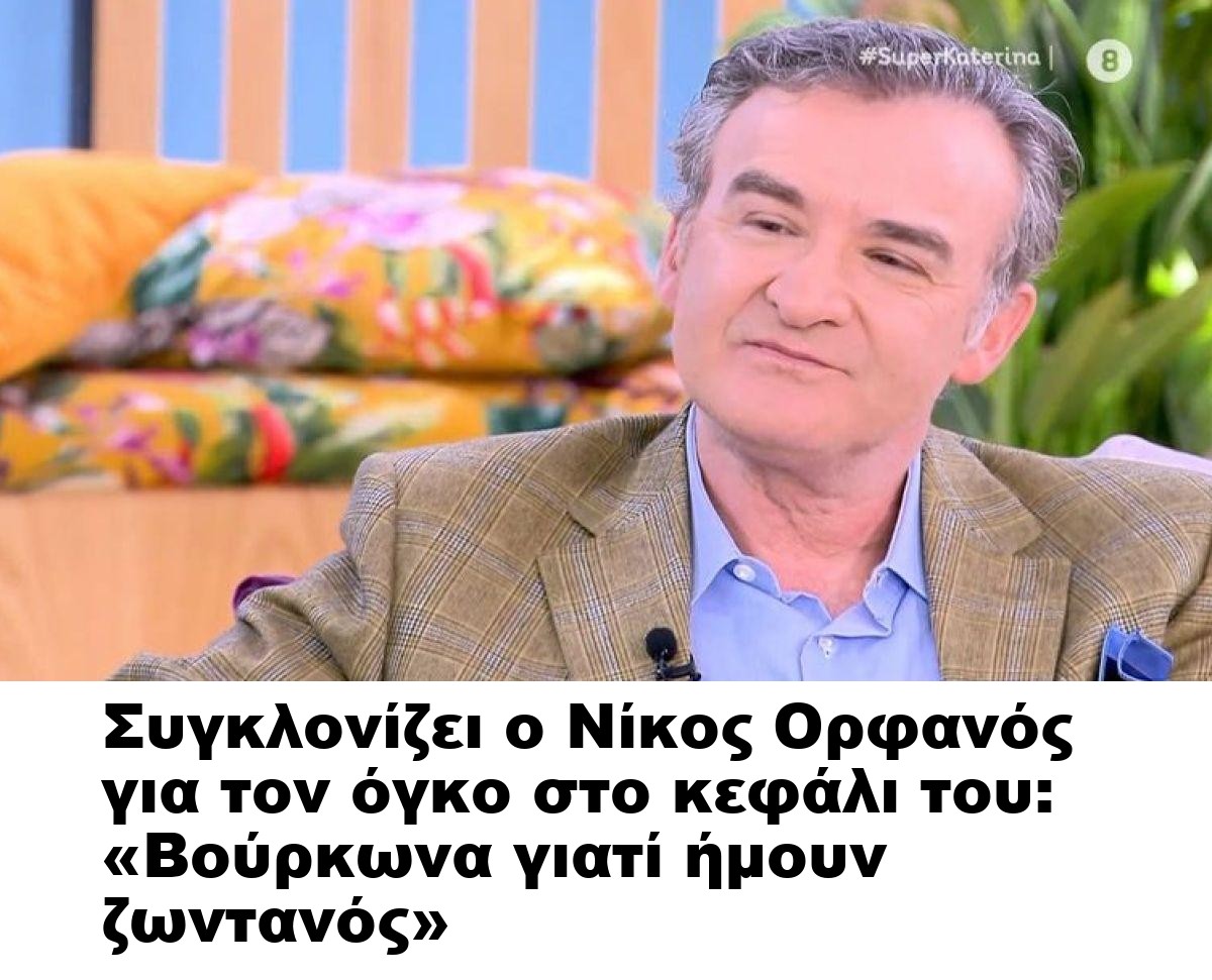 Μια από τις πιο προσωπικές και συγκινητικές του εξομολογήσεις έκανε ο Νίκος Ορφανός, μιλώντας για την σοβαρή δοκιμασία που πέρασε με την υγεία του. Ο γνωστός ηθοποιός βρέθηκε καλεσμένος στο Super Katerina και δεν δίστασε να αναφερθεί σε μια περίοδο που, όπως παραδέχτηκε, άλλαξε τον τρόπο που βλέπει τη ζωή. Η περιπέτειά του ξεκίνησε όταν, ύστερα από ιατρικές εξετάσεις, εντοπίστηκε όγκος στο κεφάλι του. Η είδηση αυτή, όπως είναι φυσικό, προκάλεσε σοκ τόσο στον ίδιο όσο και στους ανθρώπους του στενού του περιβάλλοντος.