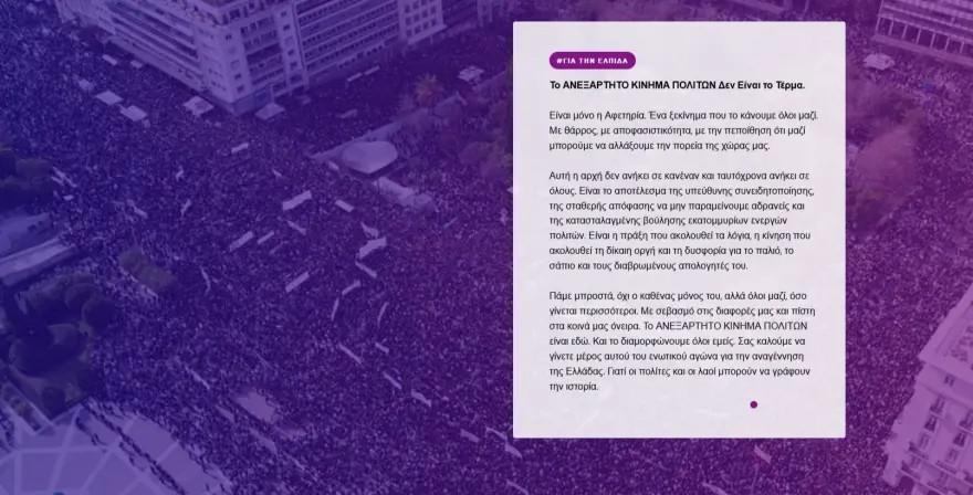 «Είμαστε ένα ανεξάρτητο κίνημα πολιτών που γεννιέται από τη βάση, από την κοινή μας ανάγκη να έρθει επιτέλους η αλλαγή» υποστηρίζει