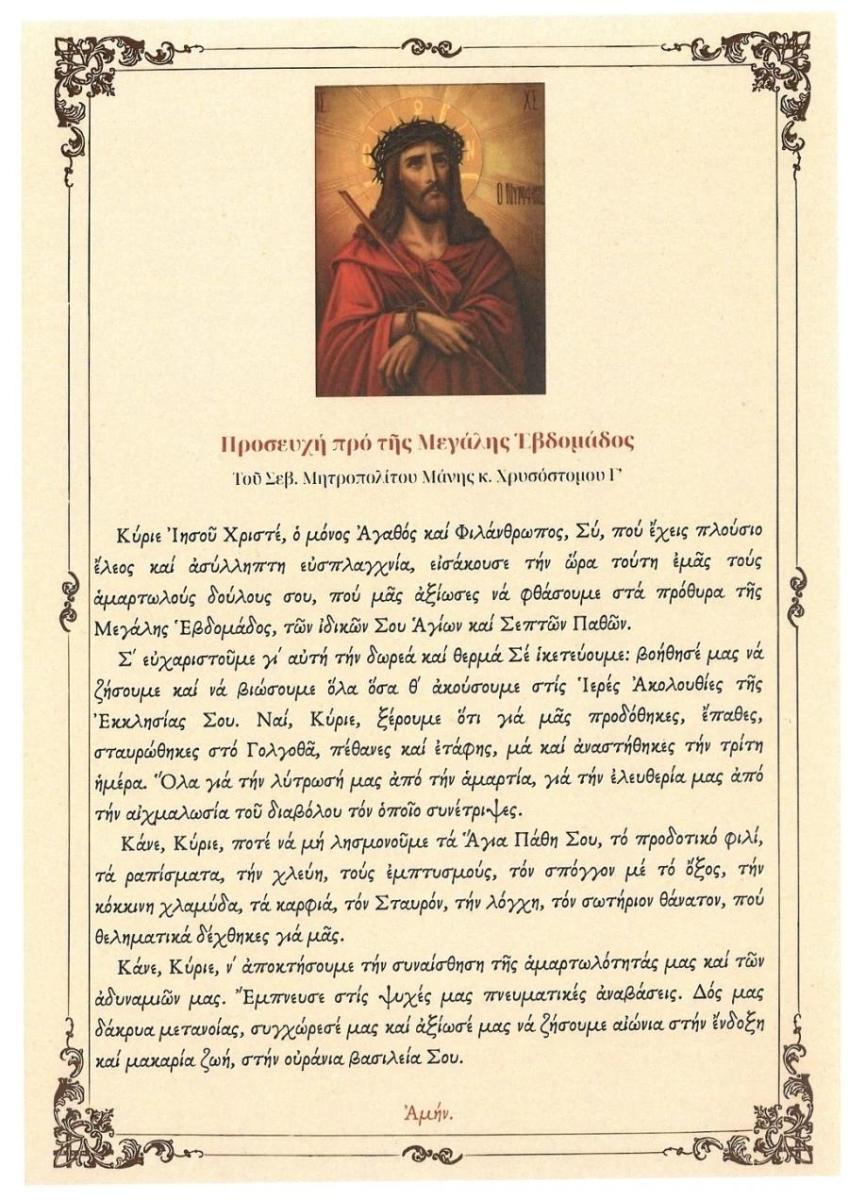Ο Μητροπολίτης Μάνης μοιράστηκε μια προσευχή προ της Μεγάλης Εβδομάδος