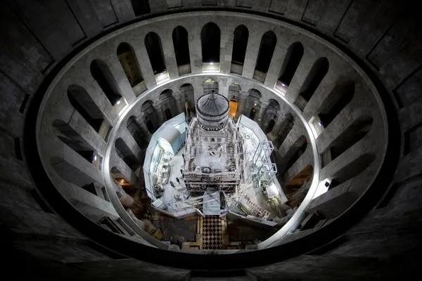 Το εσωτερικό του Πανάγιου Τάφου, βρίσκεται τους τελευταίους μήνες σε φάση συντήρησης και αποκατάστασης από μια διεπιστημονική ομάδα ερευνητών του Εθνικού Μετσόβιου Πολυτεχνείου, υπό την καθοδήγηση της Καθηγήτριας του ΕΜΠ, Αντωνίας Μοροπούλου.