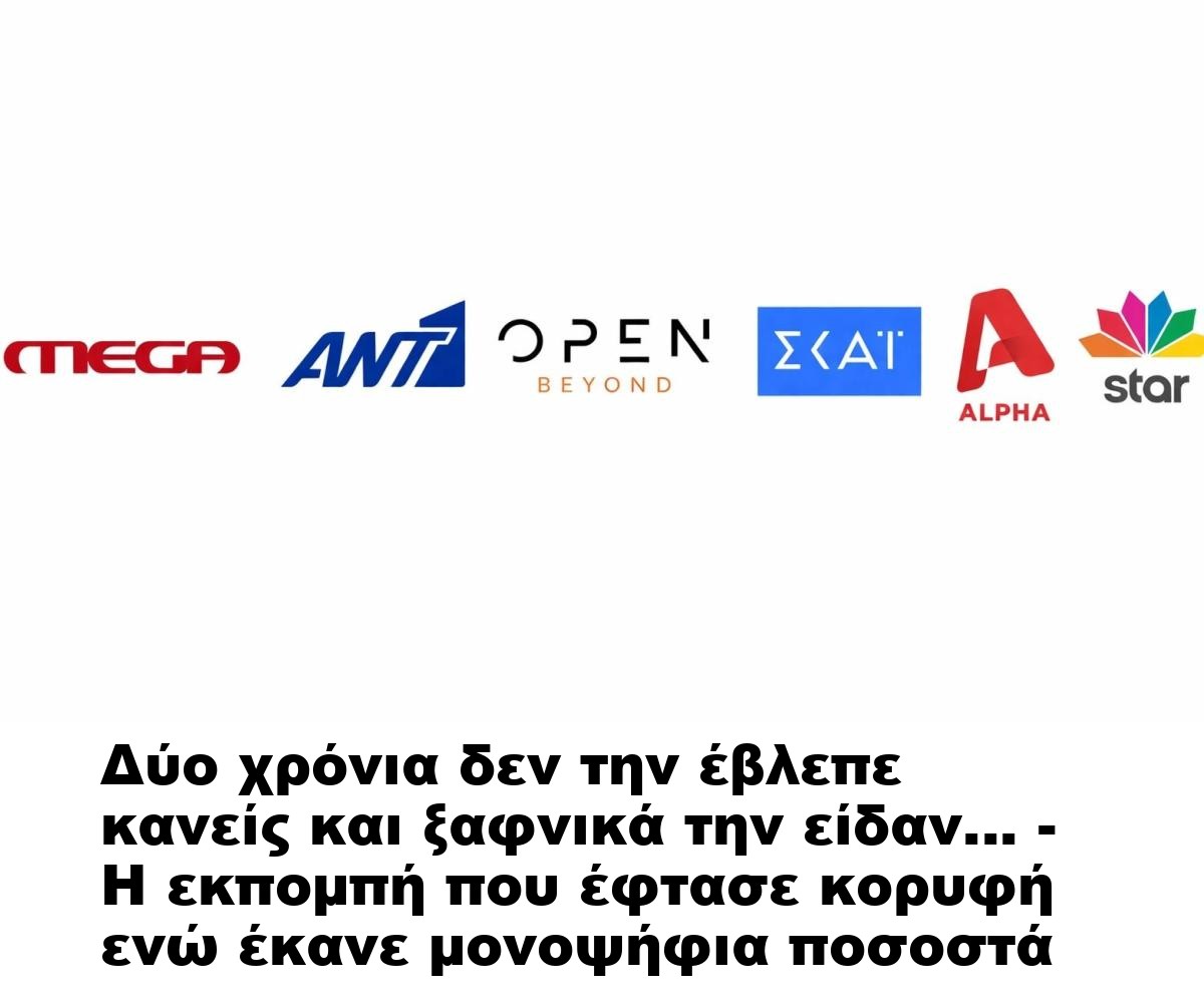 Δύο χρόνια δεν την έβλεπε κανείς και ξαφνικά την είδαν… 1.100.000 τηλεθεατές – Η εκπομπή που έφτασε κορυφή ενώ έκανε μονοψήφια ποσοστά