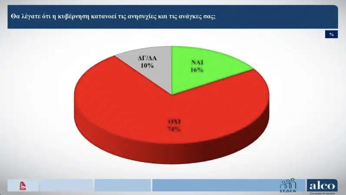 Δυσαρεστημένοι εμφανίζονται οι πολίτες αναφορικά με την απόδοση και την αποτελεσματικότητα της κυβέρνησης, σύμφωνα με τη δημοσκόπηση της Alco που παρουσίασε το κεντρικό δελτίο Ειδήσεων του ALPHA, με τη Νέα Δημοκρατία να καταγράφει τις πρώτες δημοσκοπικές απώλειες στον απόηχο των εξελίξεων στην υπόθεση του ΟΠΕΚΕΠΕ.