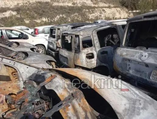 Η πυρκαγιά εξαπλώθηκε γρήγορα στον χώρο της επιχείρησης, προκαλώντας εκτεταμένες ζημιές σε συνολικά 18 οχήματα. Πιο συγκεκριμένα, σύμφωνα με πληροφορίες του neakriti.gr, έντεκα αυτοκίνητα κάηκαν ολοσχερώς,ενώ επτά υπέστησαν σοβαρές υλικές ζημιές.